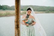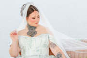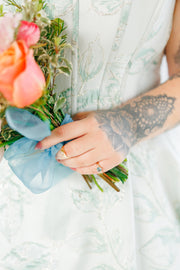 Another way that you may want to style your rings is to use a V-shaped pattern to follow the shape of your hand. You can do this by placing the pieces with larger stones towards the center of your hand, or by adding “middie” rings! This method can be used alongside the 3:2 method, or all on its own.