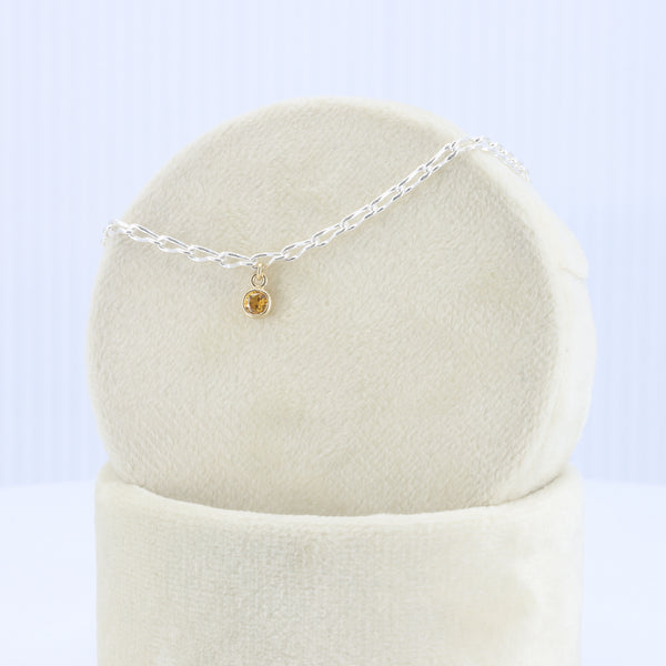 Silver Figure Eight Chain Bracelet w/ Golden Montana Sapphire Charm in Yellow Gold