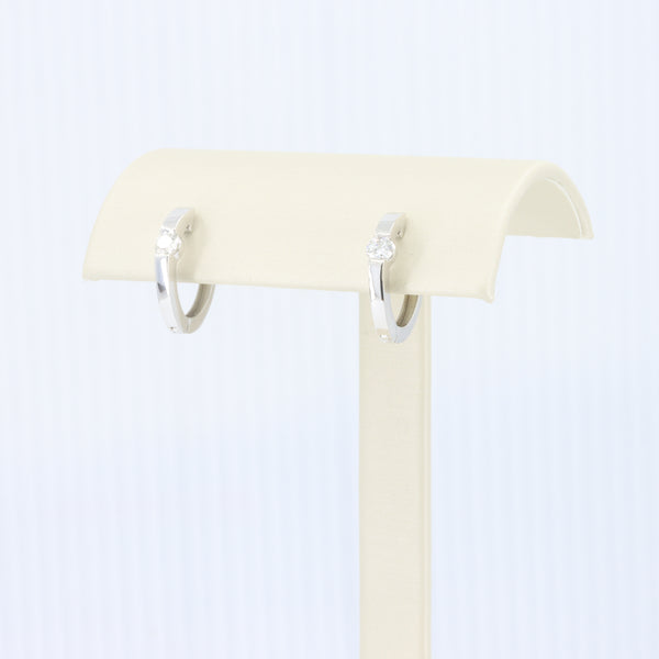 Diamond Hoop Huggie Earrings in White Gold