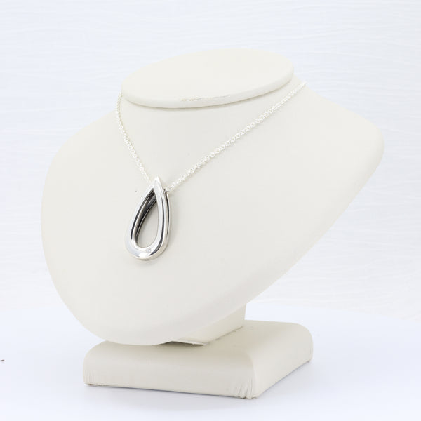Open Tear Drop w/ Diamond Accent Necklace in Sterling Silver