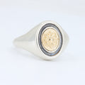 Large Signet Ring in Sterling Silver w/ 14KT Yellow Gold Flower Plate