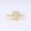 Three Stone Elongated Cushion Diamond Engagement Ring with Claw Prongs